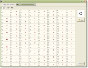 The old RJ CharView program. It will only display the current ASCII/ANSI table and let you copy a character to the clipboard.